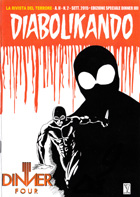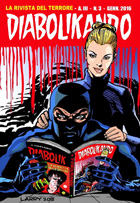DIABOLIKANDO n. 3 (Gennaio 2016) Autoproduzione Da questo numero, la fanzine realizzata da Andrea Agati diventa di 44 pagine; L'albo è stato pubblicato in due versioni: edizione standard, con copertina di Larry Camarda, ed edizione variant, con copertina di Bob Lukia. In questo numero troviamo un articolo sulla casa editrice Astorina nel 1964-65, uno sulla politica in Diabolik e la storia "Marchio di Fuoco", un'analisi su come è cambiato il collezionismo di Diabolik negli anni, un'intervista a Larry Camarda e un pezzo sull'edizione israeliana di Diabolik. Il retrocopertina dell’edizione standard presenta un cross-over tra Diabolik e Dylan Dog, realizzato da Larry Camarda. |