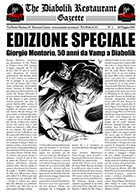 THE DIABOLIK RESTAURANT GAZETTE n. 1 (Maggio 2015) Diabolik Restaurant & Cafè Giornale del Diabolik Restaurant & Cafè di Ravenna, di 4 pagine in formato 29,8 x 42. Il n. 0 era intitolato "Clerville News" (vedi sopra). Questo numero è dedicato all’Estate Diabolika di Cervia e ai 50 anni di carriera di Giorgio Montorio. |