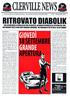 CLERVILLE NEWS n. 0 (Settembre 2014) Diabolik Restaurant & Cafè Giornale del Diabolik Restaurant & Cafè di Ravenna, di 2 pagine (un foglio unico) in formato 29,8 x 42. Sono usciti due numeri: 0 e 1, nel n. 1 il titolo del giornale è stato modificato in “The Diabolik Restaurant Gazette”. Questo numero annuncia alcuni eventi che si sarebbero svolti al Diabolik Restaurant & Cafè. |